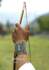 Bhutanese archer hand on an archery range, Chang Gewog, Thimphu, Bhutan