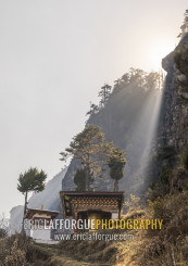 Kila Goenpa Nunnery with rays of light, Wangchang Gewog, Paro, Bhutan